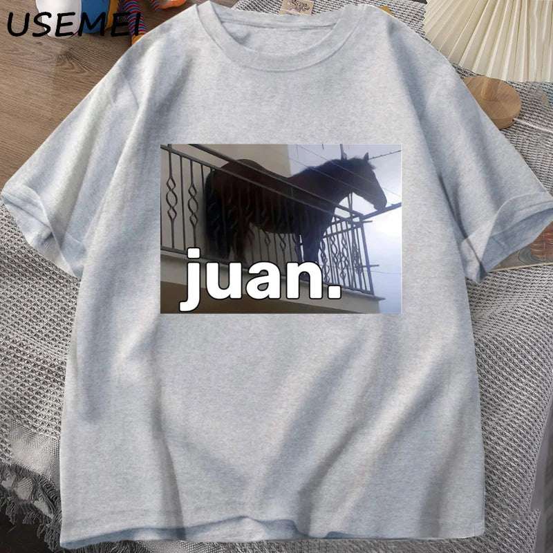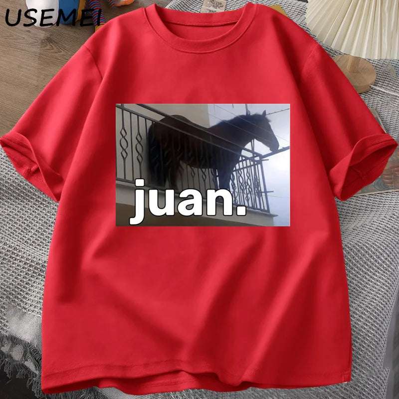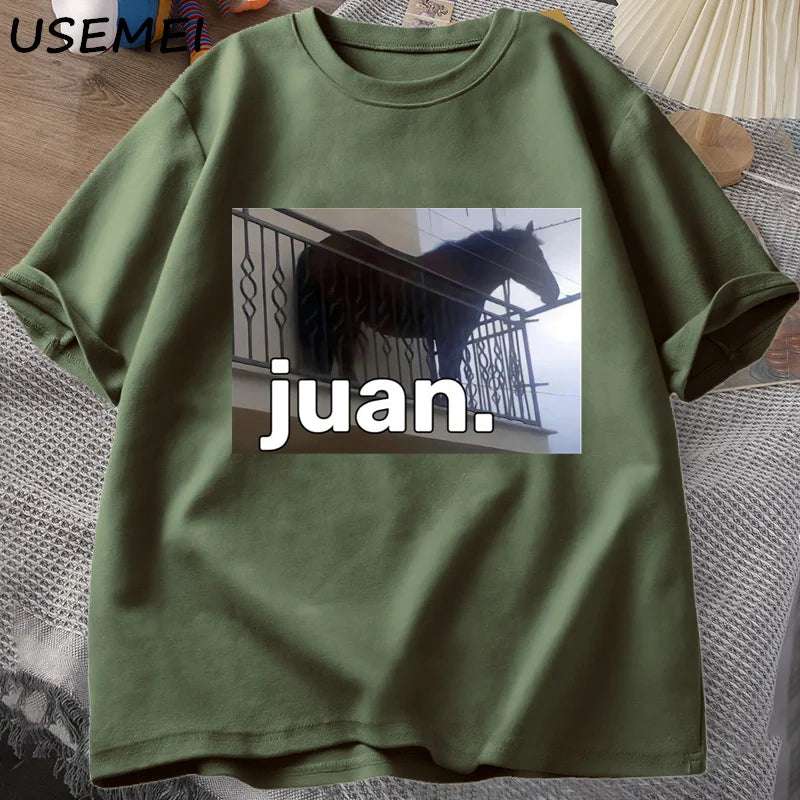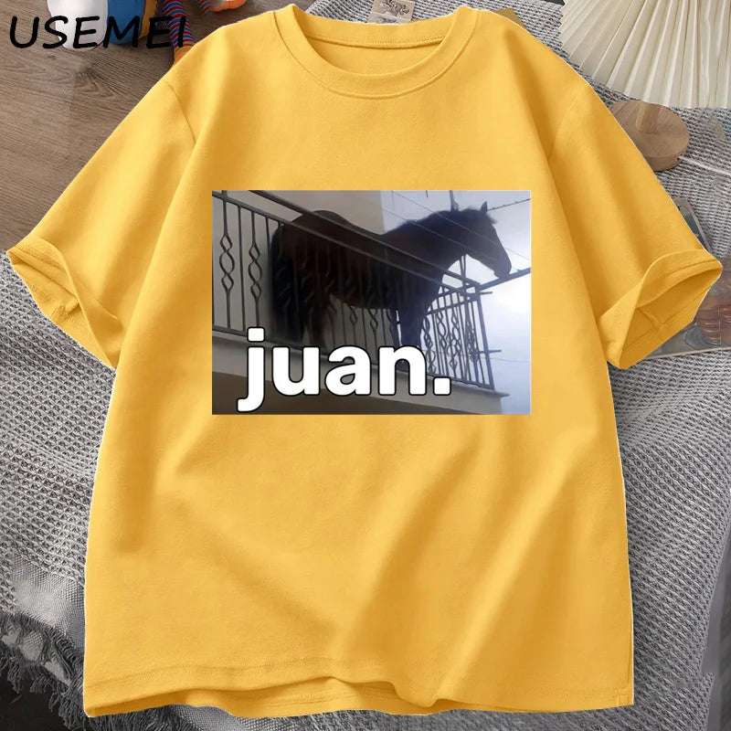 Funeral humor meets casual comfort in this Juan Horse graphic tee. Perfect for daily wear, this oversized t-shirt features a hilarious cartoon design that's sure to turn heads.
