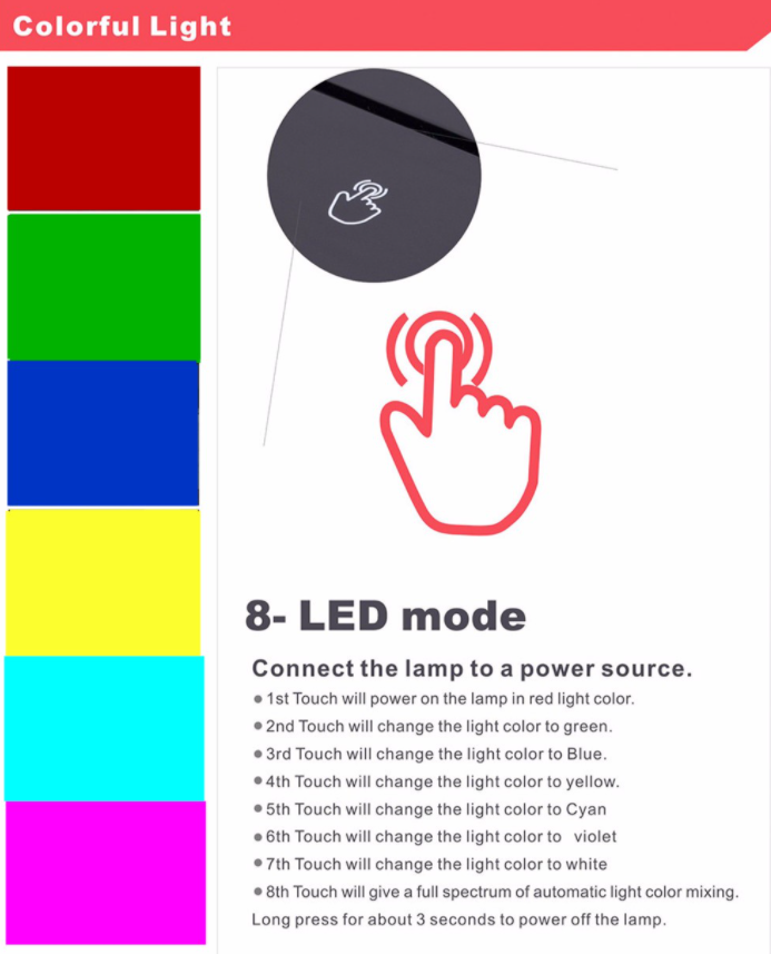 - Easy to use: You just have to be careful when removing the protective film slowly once you take your product out of the package. Then, you can touch the switch of your 3D LED Lamp to select the color you like the most! (You can also fixed color, slow, normal or fast fade). To turn it off you just have to hold the switch botton down for 2 seconds.