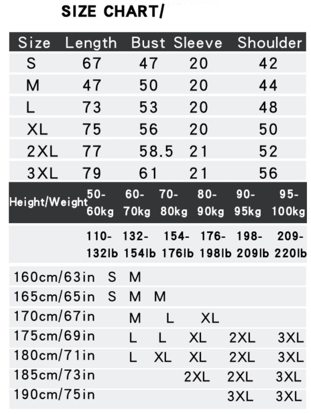 - All kind of sizes: Starting in XS to XXL ( Please use the chart below to find your perfect size).