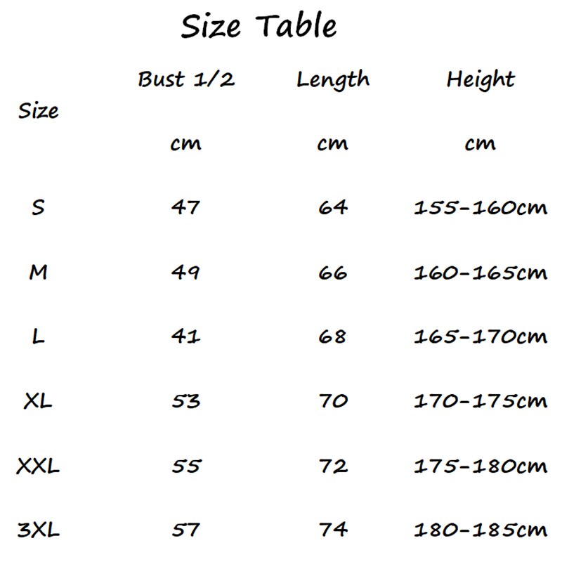 This T-shirt Is about 2 Size Smaller Than EU/US Size ,You Can Chose The Clothes Is Usually Bigger Then Your Body 5-10CM Please Allow 1-3cm differs due to manual measurement , thanks (All Measurement in cm and please note 1cm=0.39inch)