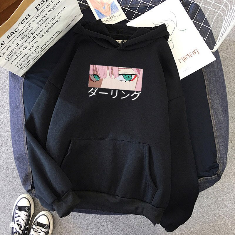 - Stunning style: Full high quality logo of the penetrating Zero Two glance with his cyan eyes and "Darling" ダーリング written in japanese .