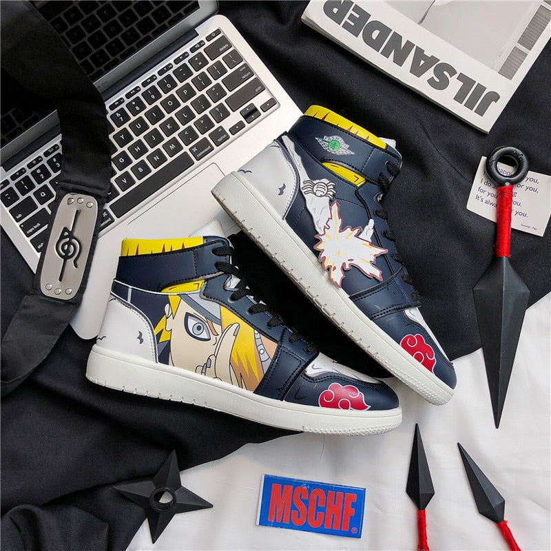 - Профессиональный дизайн: высококачественные, индивидуально разработанные кроссовки Дейдары с его глиняными бомбочками.