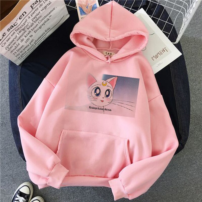 - Последуйте совету друга! : Просто посмотрите ему в глаза и позвольте ему убедить вас своими милыми кошачьими словами в этой толстовке с капюшоном «Сейлор Мун».