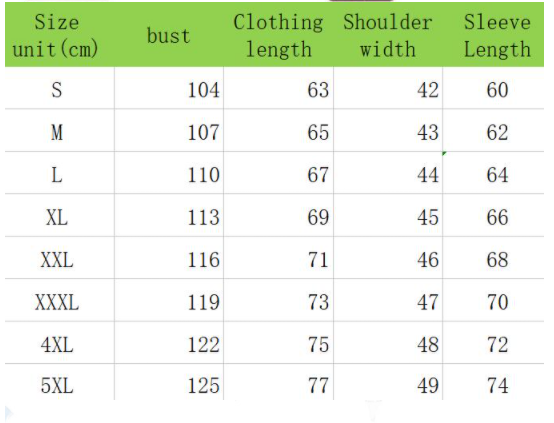 All kind of sizes: From S to 5XL (Please use the chart below to find your perfect size).